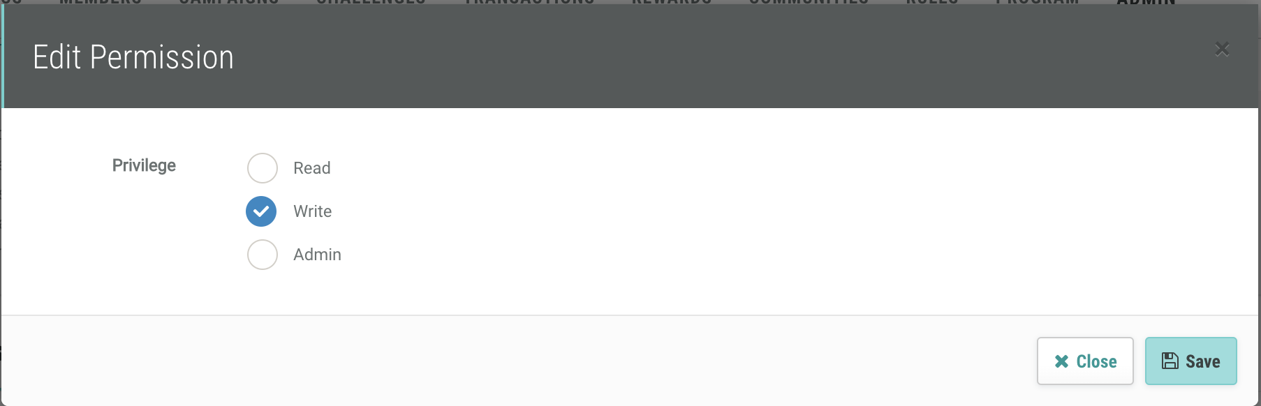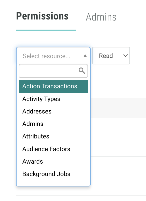 - Click the Read drop down and select Read, Write, or Admin.