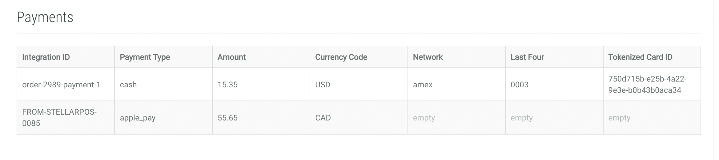 amazon_pay, apple_pay, cash, credit_card, cryptocurrency, deferred_payment, ebt, google_pay, mobile_payment, personal_check, plcc, traveler_check, gift_cards, voucher, wic, merchandise_credit_receipt, pin_debit, paypal,venmo,virtual_gift_card, cash_app, other. Its important client send these exact values. Otherwise, the transaction will be declined due to invalid payment information. Currently not configurable. To be be made configurable through the UI in future releases. |
