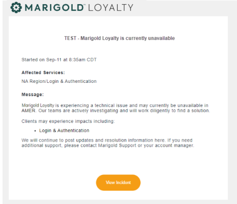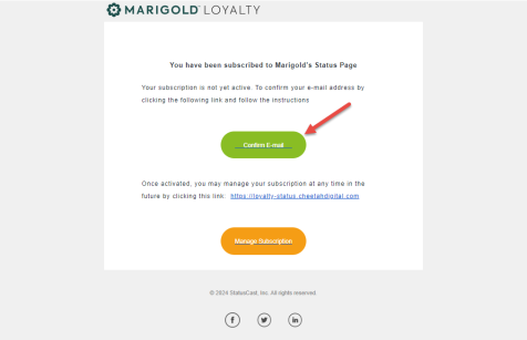 You will find a message entitled Activate your Marigold status page subscription with the message content as follows: