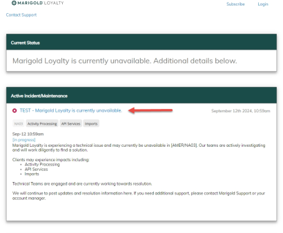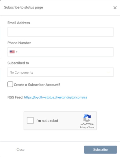 The status page provides you with regular updates regarding the status of the Loyalty platform in the event of a major system incident in your region. In this article we’ll explain the information you will see and how to subscribe to the Loyalty notification system to receive regular updates on the platform status, which we highly recommend to all users.