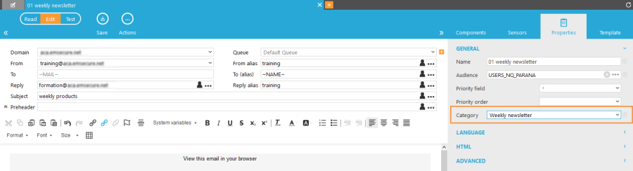 But if you have multiple newsletters and want to check if the contact clicked a specific newsletter, you need a way to link the newsletter optin with the created emails. When you add a message category (e.g. weekly newsletter) to the newsletter template, all generated emails will have the same message category.