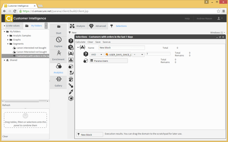 Save this selection in the Segments folder and CI creates the dynamic segment on the audience list in Campaign.