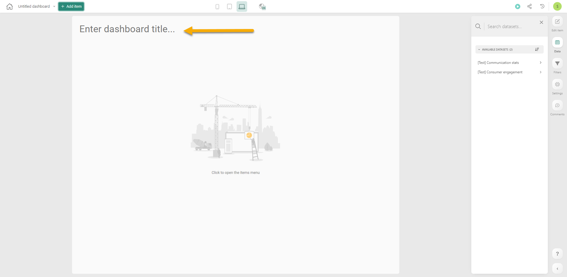 3. Start by giving a name to the dashboard. Enter the title at the top.