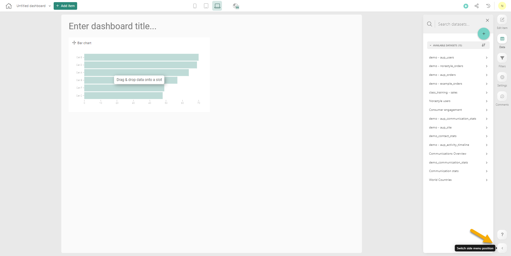 5. In order to use the proposed graph in your dashboard, you just need to drag & drop the graph onto your dashboard. After the graph is placed on the dashboard, you can still modify the data and/or the setup.
