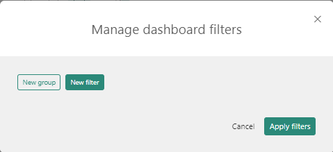 To add a new filter, click the Add a filter button. You can filter both your dashboard and any individual chart using an OR condition. To do that, simply add a filter to your dashboard via the Filters menu. If you don’t want to apply the filter across all your charts, in the same menu, you can choose a specific chart to filter on. You can also do it by going to the data settings of your chart and clicking Add filter. The following Filter dialog is displayed: