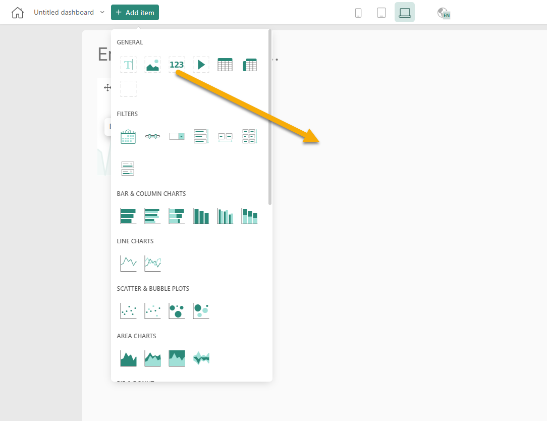 1. We will once more use the Number Component. Add 2 of these components onto the Dashboard.