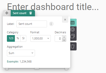 By default, the sum of the SENT_COUNT is shown in the number item.