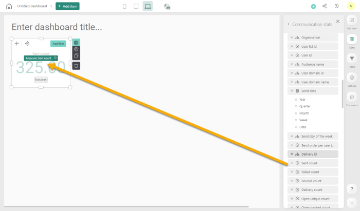 2. Drag and drop SENT_COUNT to the measure of the number item.