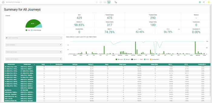 This table provides an overview of the KPIs per journey and per content in the journey.