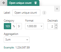 - Format - you can choose from a detailed numerical value (123), a percentage or a SI notion (e.g. K for thousands, M for millions)