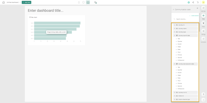 5. In order to use the proposed graph in your dashboard, you just need to drag & drop the graph onto your dashboard. After the graph is placed on the dashboard, you can still modify the data and/or the setup.