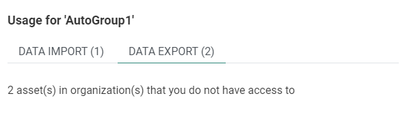If a notification group is not used at all, a corresponding message is shown.Example of a notification group that is used in 3 tasks, 4 data exports and 9 data imports, from which the user can't access 1 asset because they do not have access to its Business unit :