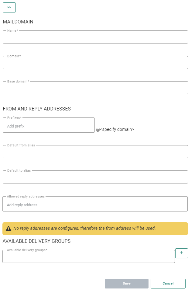 Note: When saving a maildomain, your configuration is validated. Inconsistencies result in errors .Rectify your setup and save again.