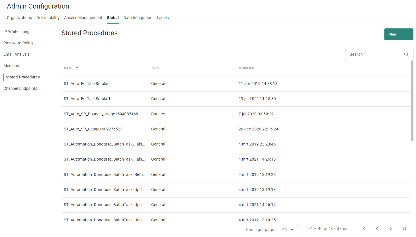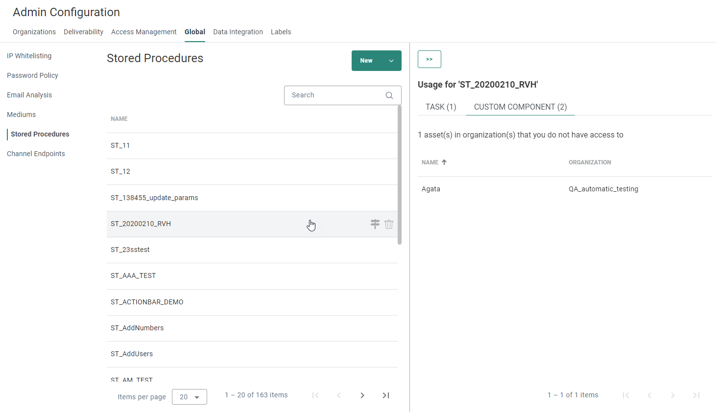- General Stored Procedure — These Stored Procedures can be used in tasks or Custom Components in a journey. The Custom Component itself is configured in the Data Exchange section.