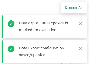 With this second option, you'll be notified immediately that the data export is marked for execution.