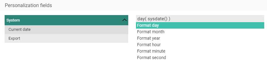 You can also use expressions in your export. With expressions you can concatenate fields, convert date fields, format text fields or perform any other operation that is provided through the Personalization Dialog. You can enter the expressions also manually.