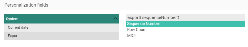 In this section you define the mapping between the fields in the selected list and the columns in the export file.