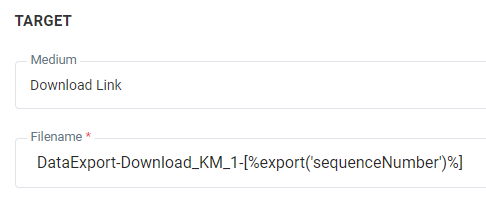 • After selecting 'Download Link' from the drop-down, a 'filename' field is available to enter a filename.