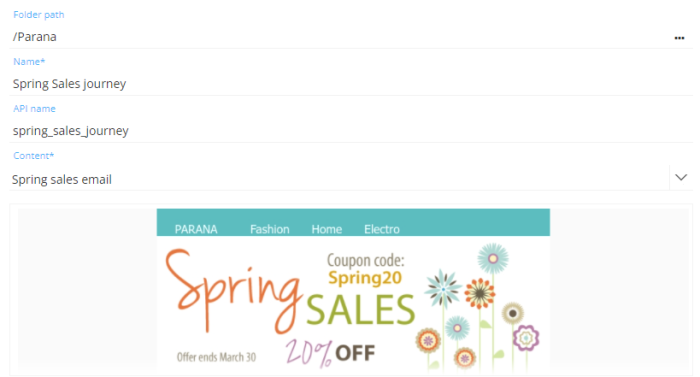 Enter a journey name; for example 'Spring Sales journey'.