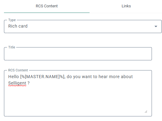3. Enter your message content, for example: “Hello [%[MASTER.NAME]%], do you want to hear more about Selligent ?”