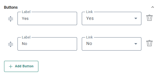 5. Add two Buttons (this is the key requirement) to the RCS message and link the Reply links created earlier. Button label examples: