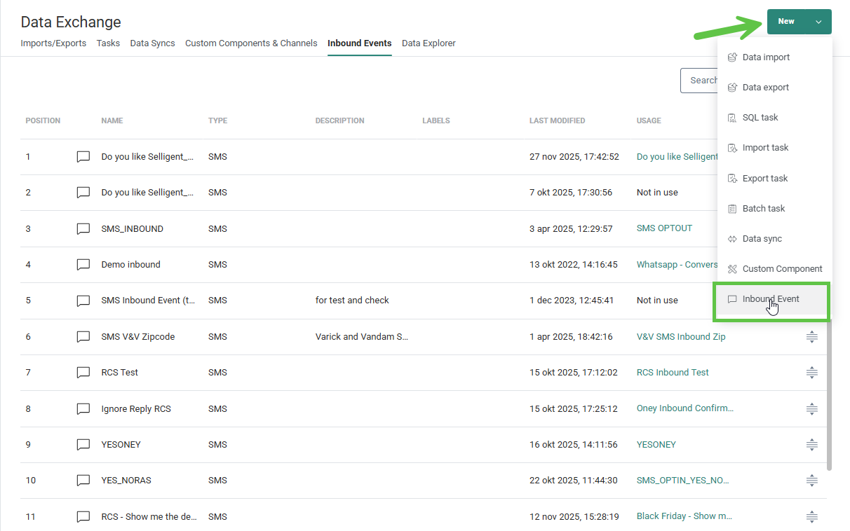 1. Navigate to Data Exchange and create a new Inbound Event.