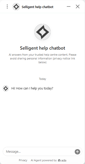 — Access to the chatbot. Enter your questions with clear instructions to search the Selligent by Zeta help center using the integrated chatbot. The following dialog pops up: