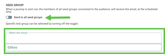 Toggle the option off if you do not want to send the message to any of the Seed Groups, or, it you only want to send it to a select number of Seed Groups. You can select the specific Seed Groups from the field below:![]()