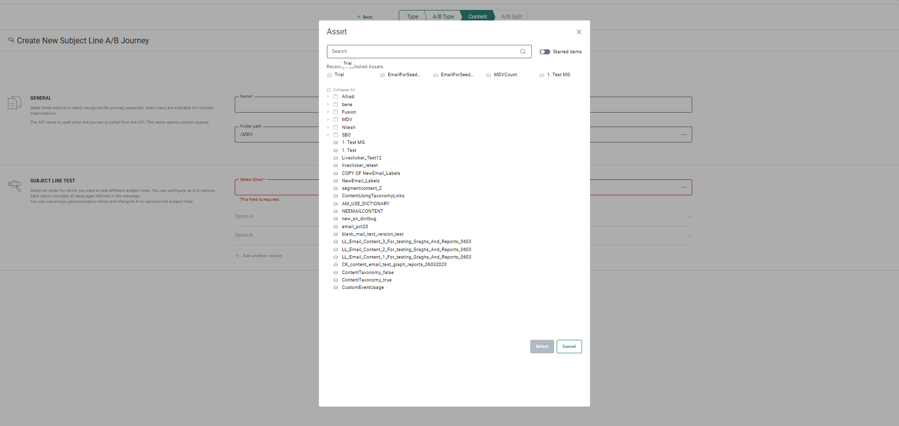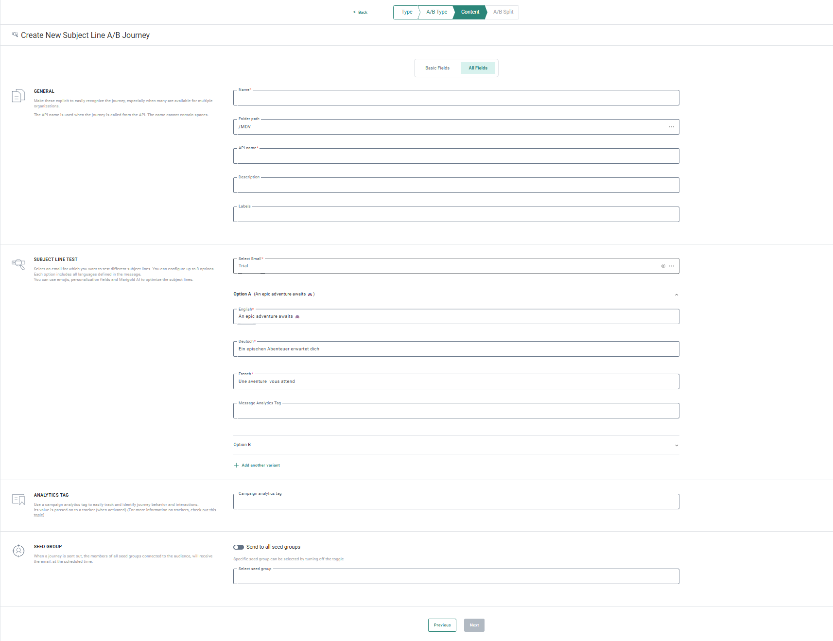 Note: Subject Line A/B Journeys can be created for email messages only.
