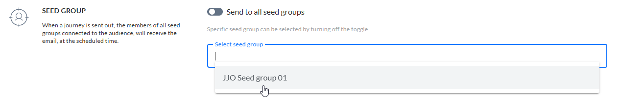 Toggle the option off if you do not want to send the message to any of the Seed groups, or, if you only want to send it to a select number of Seed groups. You can select a specific Seed group from the field below: