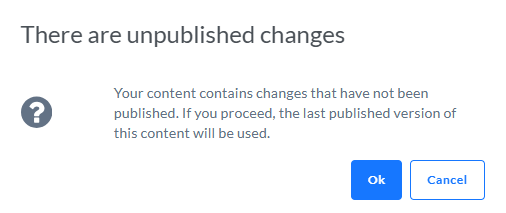 If you don't publish the content after you made changes to it, returning to the journey and reactivating it, shows a pop-up explaining that there are unpublished content changes.