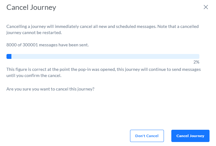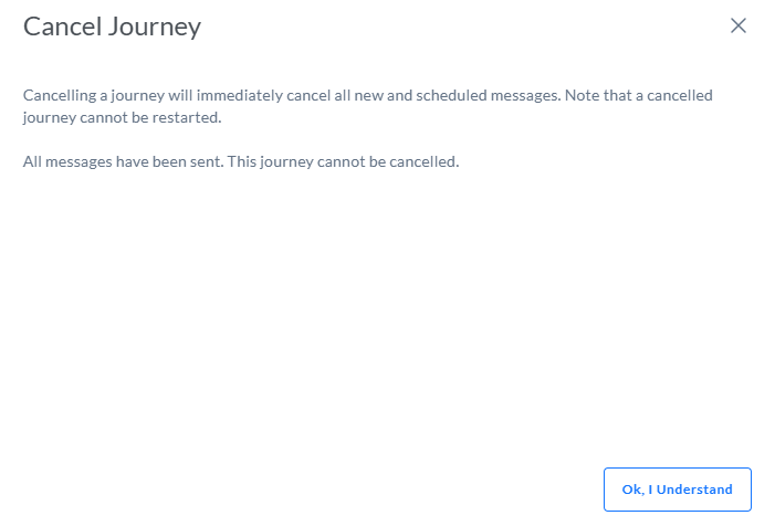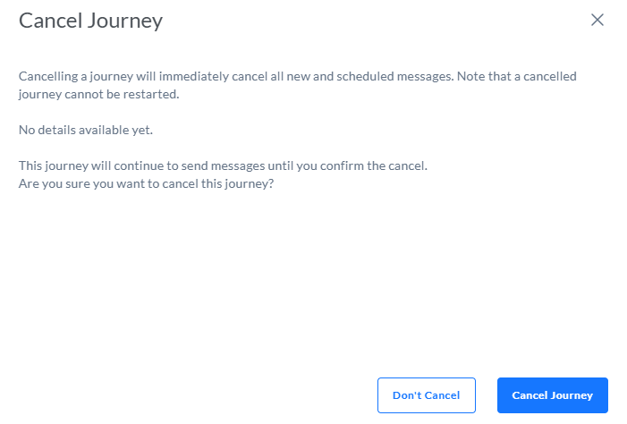 When you cancel a Journey different alerts are displayed, depending on the execution status of the journey: