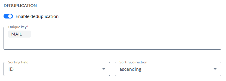 Sorting direction — Choose from ascending or descending to define the record that should be kept.