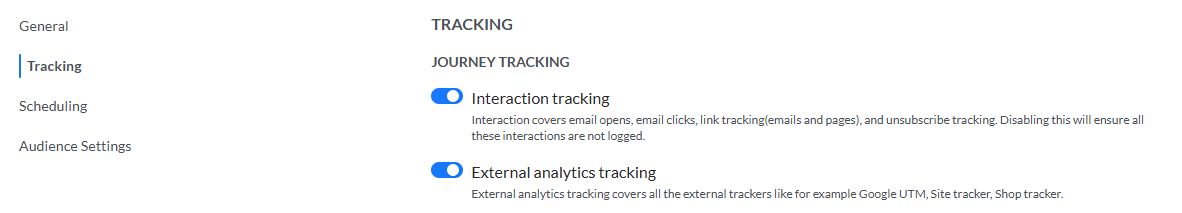 - Tracking — Properties linked to journey tracking, external and interaction.