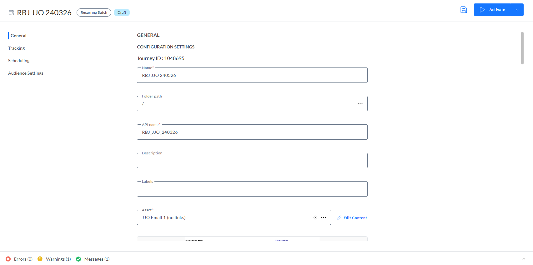 When you create a Recurring Batch Journey using a message, you have the possibility to make changes to this message, while creating the journey.