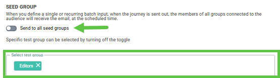 Toggle the option off if you do not want to send the message to any of the Seed Groups, or, if you only want to send it to a select number of Seed Groups. You can select the specific Seed Groups from the field below: