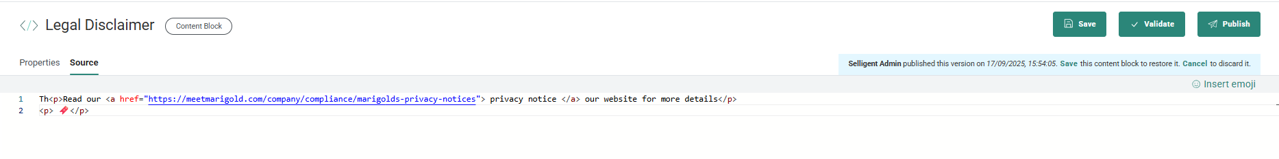 1. Open and validate a message that contains a Content Block created before this feature was enabled.