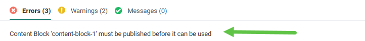 2. You will see an error message prompting you to publish the associated Content Block first.