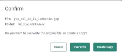 - Overwrite — Overwrite the existing file in the library with the new one.