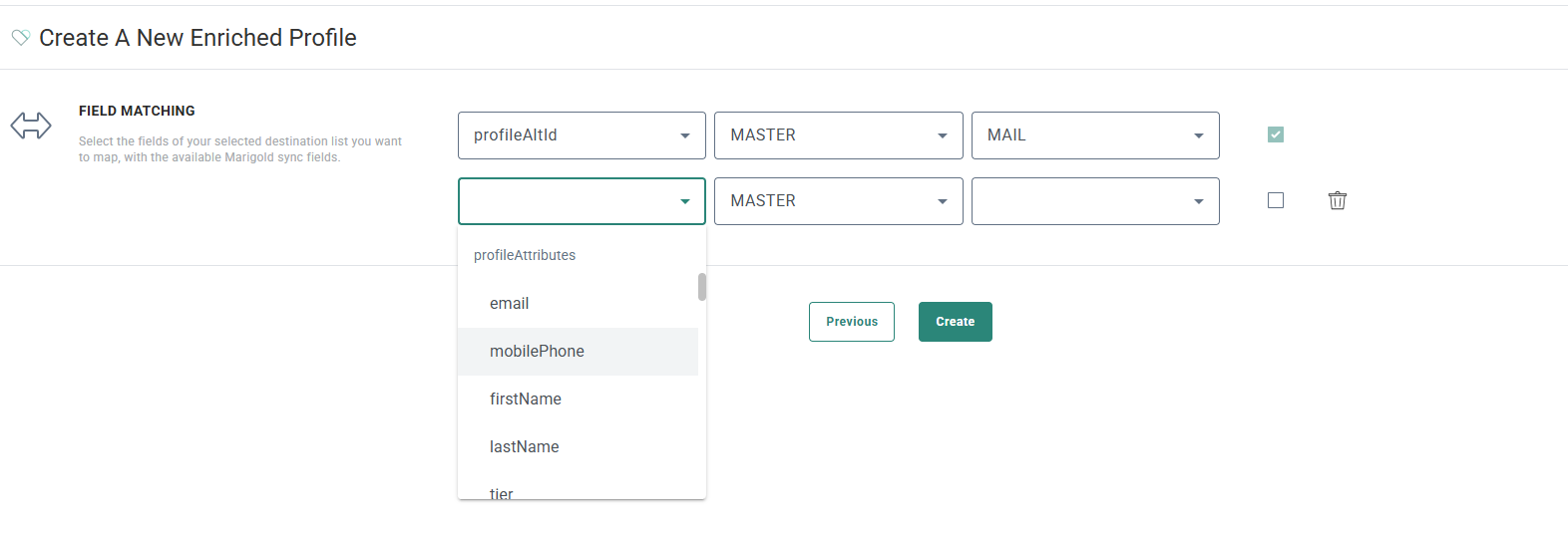 4.1. Select first the Loyalty profileAltId field from the first drop-down.