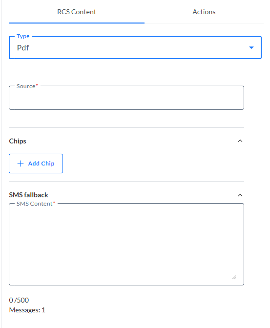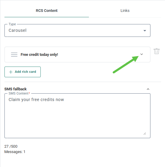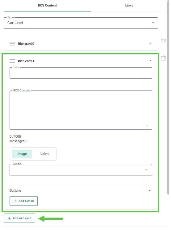 1. Select rich card from the RCS type drop-down.