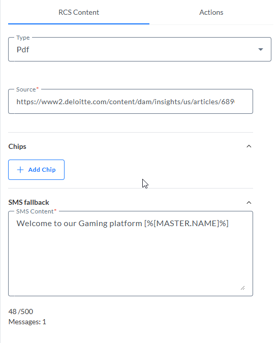 4. Define a fallback SMS. This will be sent when the RCS message cannot be delivered. It uses the same channel endpoint as the RCS message.