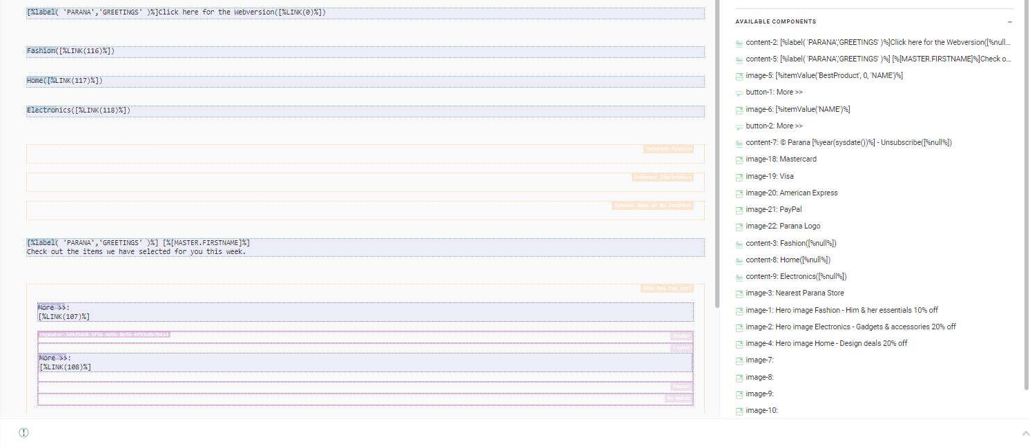These components are listed here in case you start creating a Text version from scratch. You can then re-use already predefined content components from the Design and drop them here in your Text version.