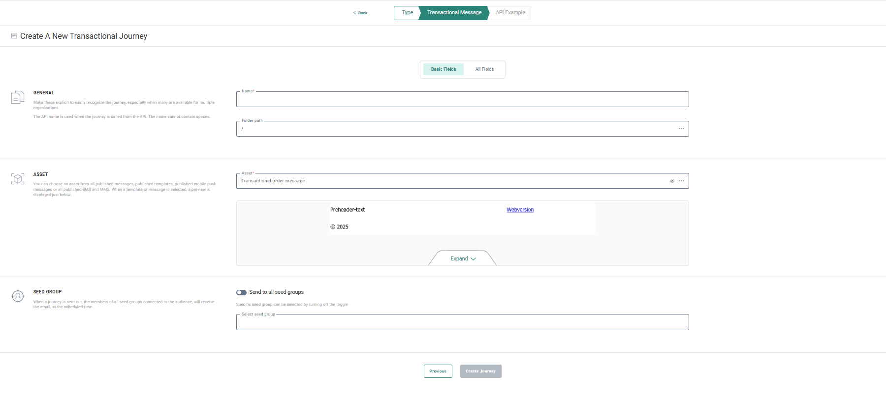 Note: Transactional Journeys can also be created from the Journey entry. Check out this topic for more information.