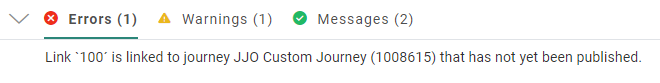 When the template is published automatically a validation is performed and the results of that validation are visible just below the Design panel. If the validation returns error messages, the template cannot be published.