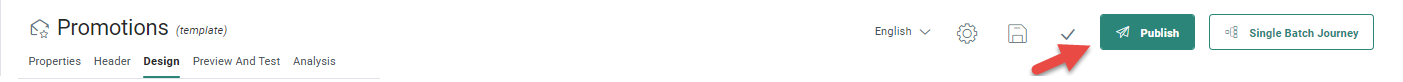When the template is ready, besides saving it, you need to publish it to make it available for use in journeys.