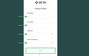 Enter your name, and create a password for your new Zeta Login.