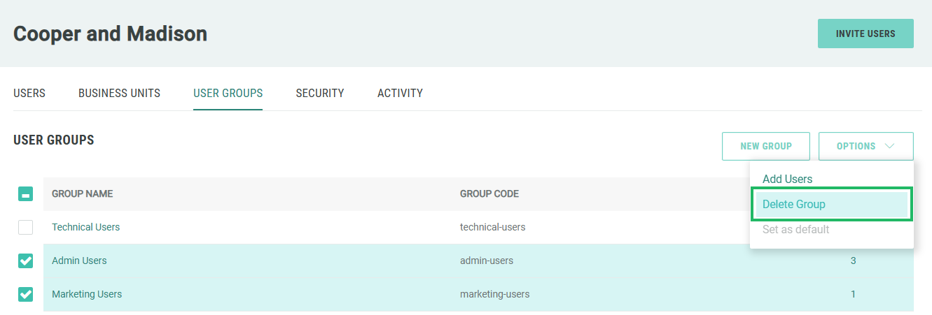 The platform allows you to delete a User Group from two different places: