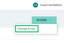 1. Within the header bar, select Options > Change Email . A confirmation dialog box is displayed; click Yes.