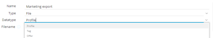 - Data type — 'Profile', 'tag' or 'offer' can be selected.Offer can only be selected when type is set to File.